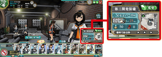 - ※艦娘ごとに「第三開発」で装備を獲得できる回数が定められています。
